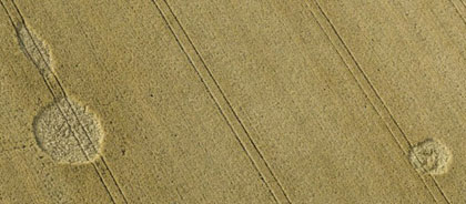 Während eines Fotofluges zu bereits älteren Kornkreisen in der Grafschaft Hampshire wurde eine kleine ungewöhnlich ungenaue Formation aus zwei "Kreisen" und einer Ovalform in einem Feld entdeckt. Leider kam die Entdeckung derart unerwartet, dass der Fotograf aus der Luft dem Muster keine exakte Örtlichkeit zuordnen könnte. Da das Muster bislang nur aus der Luft dokumentiert werden konnte, kann über die Eigenschaften Qualitäten am Boden bislang nur spekuliert werden. Der deutsche Kornkreisforscher Andreas Müller (kornkreise-forschung.de) vermutet jedoch, dass es sich um ein weiteres Exemplar sogenannter "Drachenspuren" handelt - Kornkreismuster also, die sich durch eine auffallend ungenaue Ausformung auszeichnen und schon im Vorjahr in der Nachbargrafschaft Wiltshire entdeckt wurden (...wir berichteten).